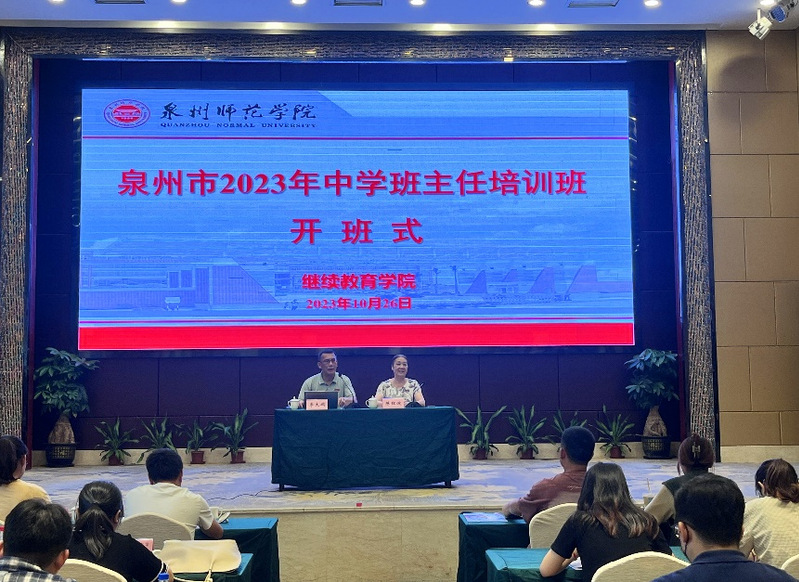 为加强学校德育体系和班主任队伍建设,全面提升班主任立德树人的能力水平,建设一支结构优化、富有活力的专业化班主任队伍,10月26日下午,由泉州市教育局主办、h動漫继续教育学院承办的泉州市2023年中学班主任培训班顺利开班,来自泉州市直学校和13个县市区的151名中学班主任参与集中培训。继续教育处副处长、继续教育学院副院长陈红波出席开班式并致辞。