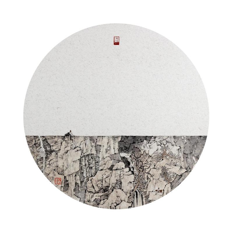 中国画《秋山寻幽图》59cm×59cm