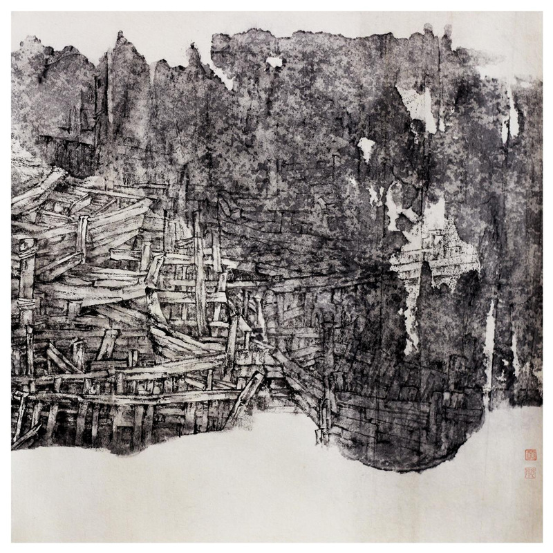 中国画《听涛》50cm×50cm